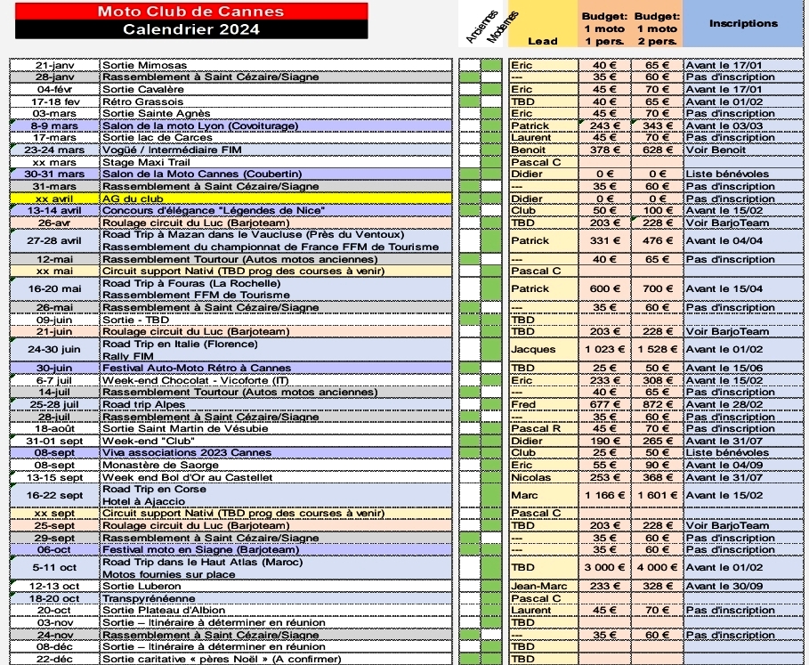 Voici un petit rappel des principales sorties 2024 du Moto Club. Petites balades du dimanche, week-ends, voyages, rassemblements, il reflète la diversité du monde motard car le club s'adresse à tous les profils.