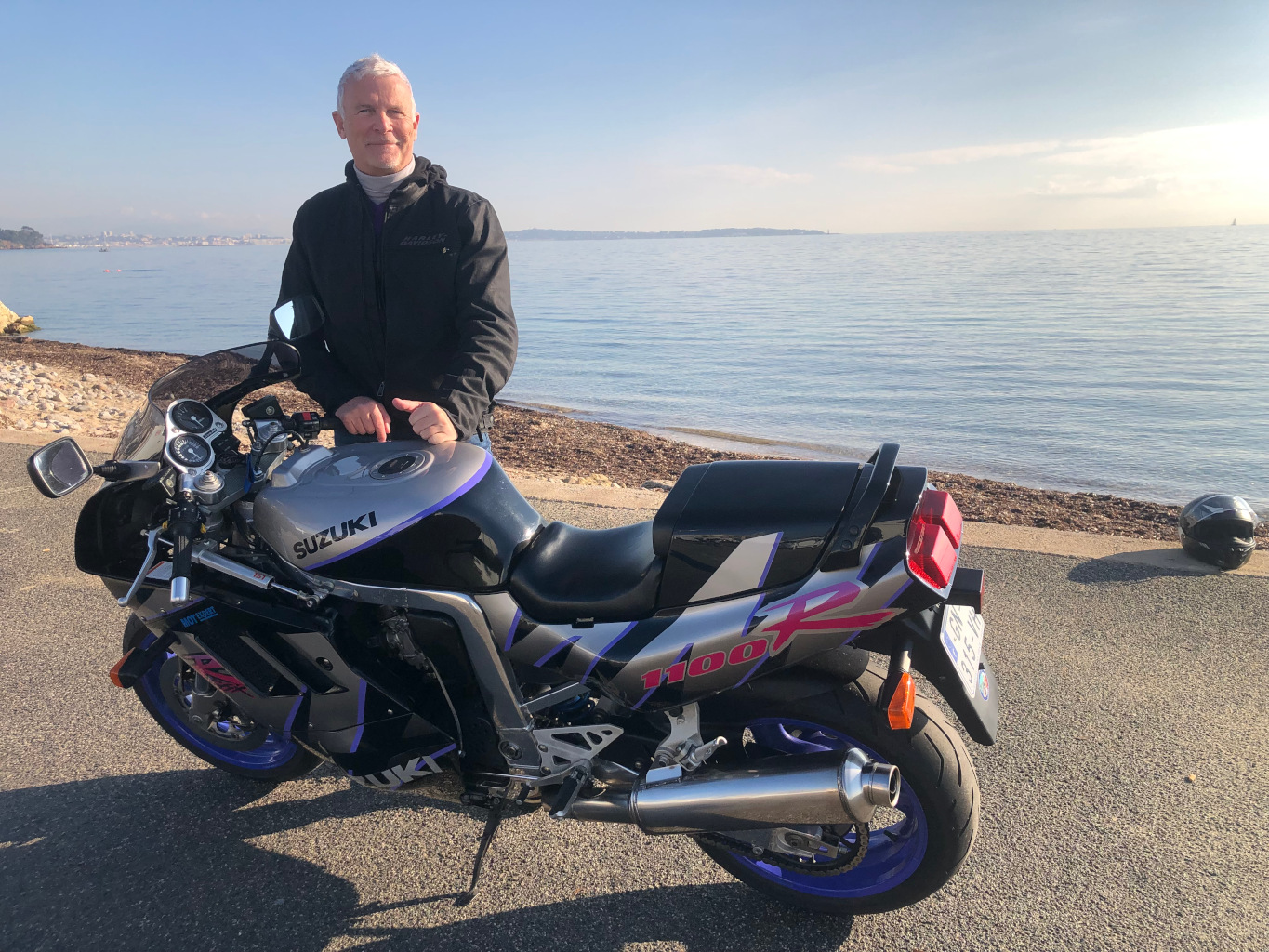 En 92 Jean Marc s’offre une 1100 GSXR puis viendra une Suzuki 1300 GSX. Quelques années plus tard c’est au guidon d’une Yamaha R1 qu’il peaufine son amour des courbes rapides. Il s’assagira un peu avec une VROD et aussi un Tmax. Un Tmax qui a fait sa légende au sein du moto club de Cannes. Lors de sa première visite impasse Béraud à l'occasion d’une des traditionnelles réunions du MCC pour accueillir les « impétrants » notre homme se présente en motard accompli… mais en scooter.