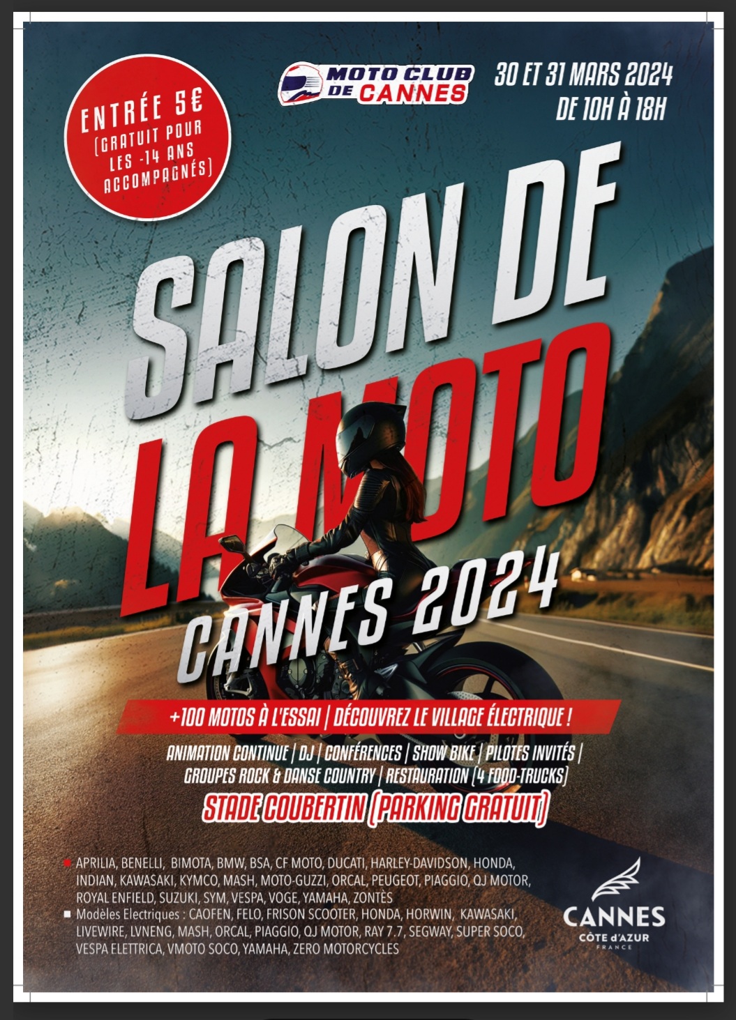 C’est du 30 au 31 mars que se tiendra à Cannes, au stade De Coubertin, le Salon de la moto 2024, conçu et organisé pour la première fois par le moto club de Cannes.