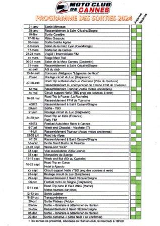 Voici un petit rappel des principales sorties 2024 du Moto Club. Petites balades du dimanche, week-ends, voyages, rassemblements, il reflète la diversité du monde motard car le club s'adresse à tous les profils.